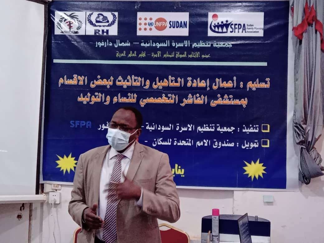 تسلمت وزارة الصحة بولاية شمال دارفور اليوم، ثلاثة عشر قسماً من أقسام مستشفى الفاشر التخصصي للنساء والتوليد التي تمت إعادة تأهيلها وتأسيسها بواسطة جمعية تنظيم الأسرة السودانية- فرع الولاية وبتمويل من صندوق الأمم المتحدة للسكان بتكلفة كلية بلغت أكثر من (29) مليون جنيه.